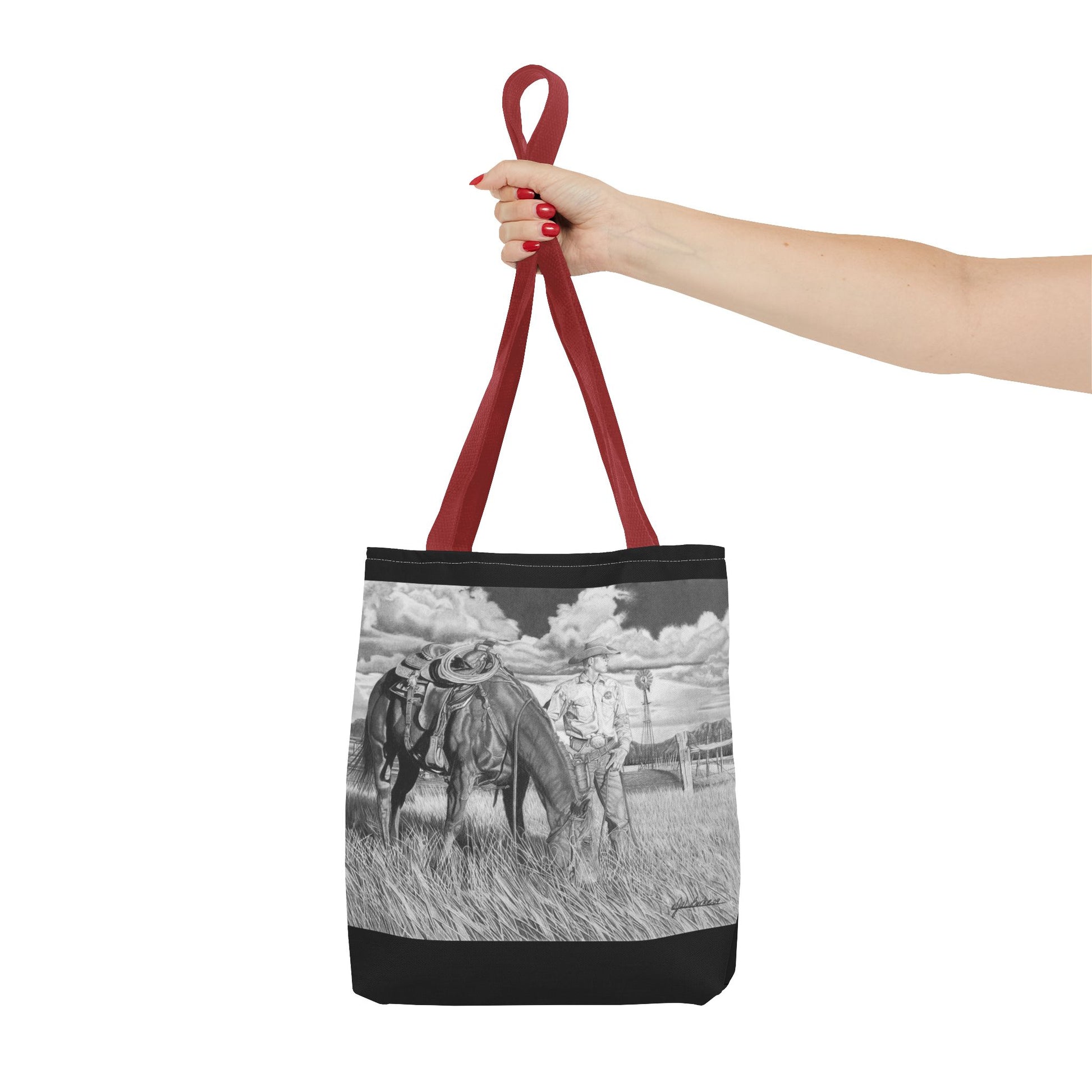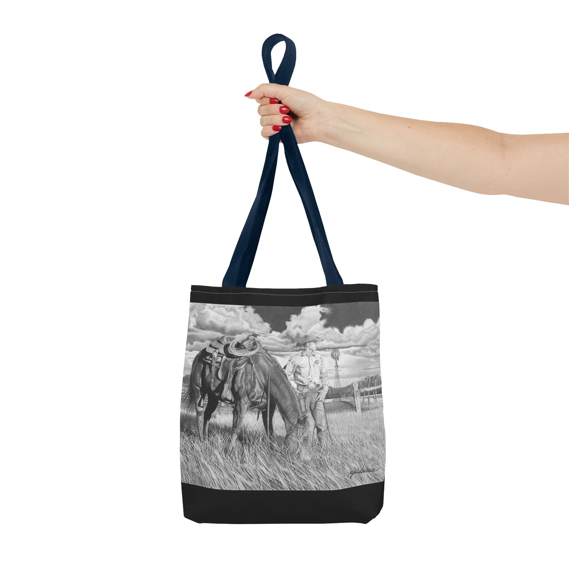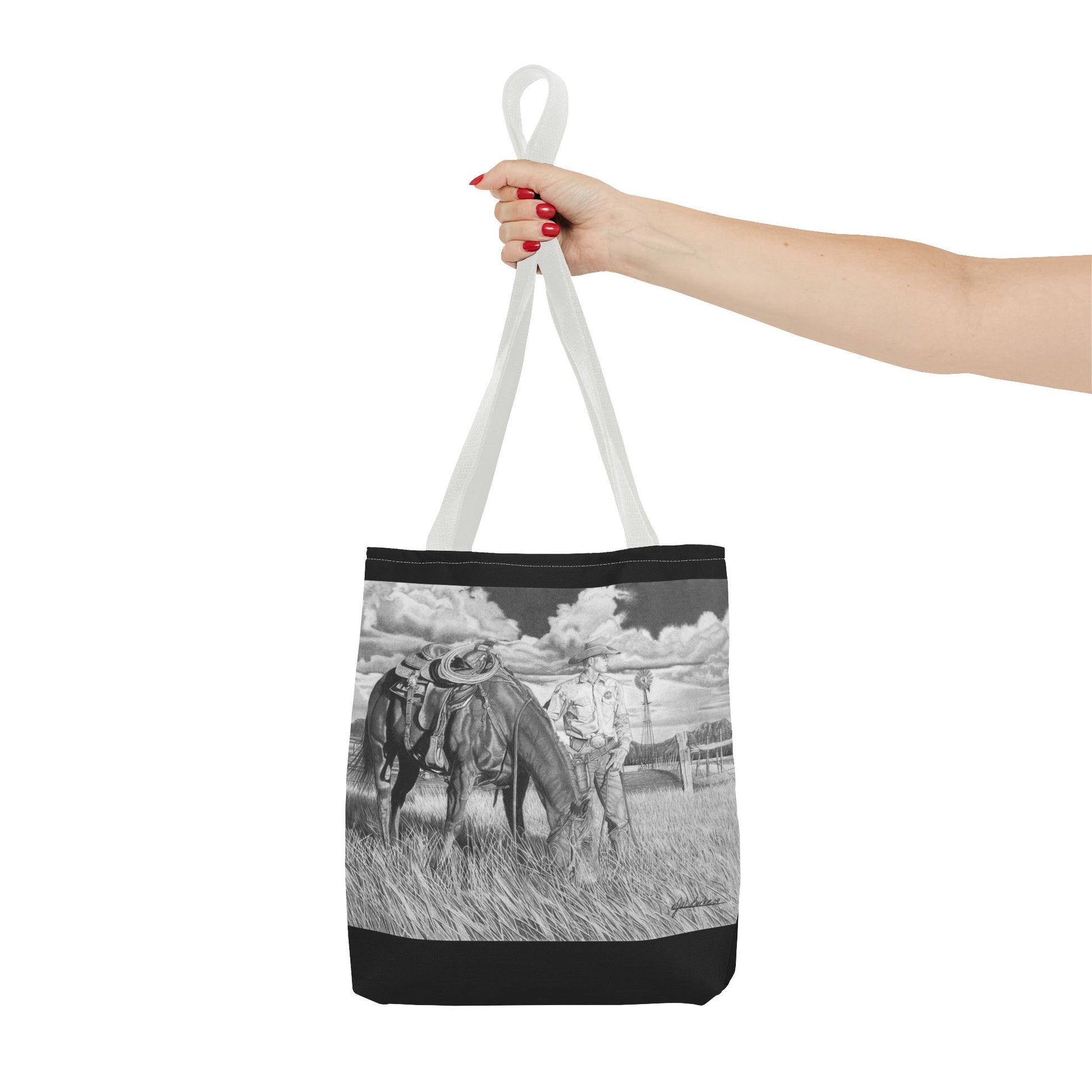 Western art on a durable and versatile tote bag, perfect for everyday use. This tote bag exudes a rustic and artistic vibe, making it an excellent addition to your outfit or shopping trips. Ideal for those who appreciate western art and want a functional yet stylish accessory. Great for gift-giving during holidays, birthdays, or special occasions.
